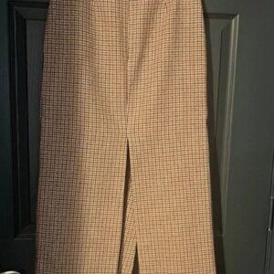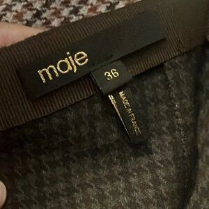 Maje Jaisa Houndstooth Thigh-High Front Slit Midi-Skirt Brown Women's Sz 36