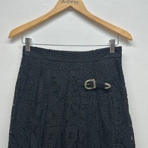 Maje Jalilo Skirt Buckled Asymmetric Hem Pleated Guipure Lace Midi Black Size 40 / Large