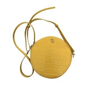 Maje Jane Yellow Embossed Leather Round Crossbody Bad Purse With Chain