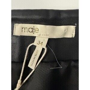 Maje Jarisco Jupe Coir Black Leather Mini Skirt Rommet Suede Accent Trim Sz 34