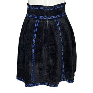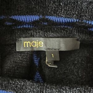 Maje Jerome Jacquard-Pattern Pleated Mini Skirt A-Line Black & Blue Size 1 Small