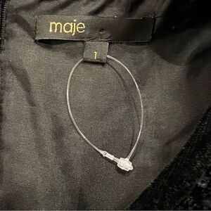 New without tags — Maje “Ketsia” midnight blue sequined mini dress. A chic crepe dress fully embellished with shimmering midnight-blue sequins, featuring a flattering slightly loose fit, elegant short sleeves, and a luxe bow-embellished velvet waistband. Hidden side pockets and concealed back zipper for a sleek finish. Perfect for weddings, parties, holiday events, or a sophisticated night out.