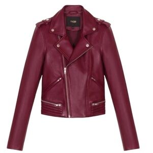 Maje Lamb Leather Bordeaux Basilta Moto Jacket NWOT in Burgundy
