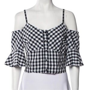 Maje Lapri Gingham Cropped Off Shoulder Top Sz3