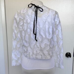 Round neck, bracelet sleeves, sheer cropped overlay, textured abstract pattern