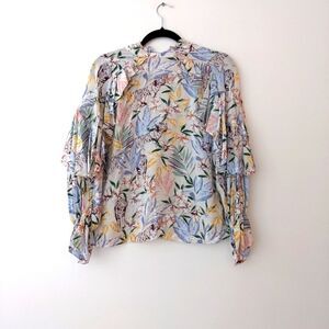 Maje Letrany Printed Ruffle Top jungle white blanc floral blouse