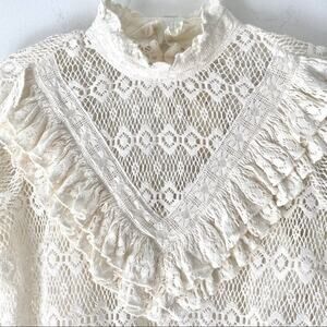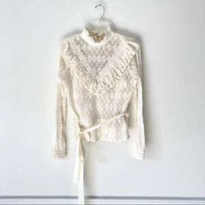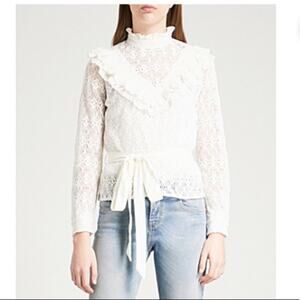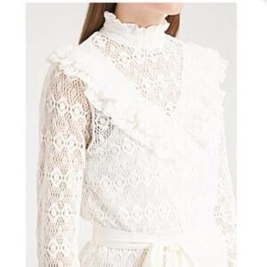 Maje Limba Cream Lace Long Sleeve Ruffle Shirt size 3 which is US Large. Retail 265. Measurements laying flat are chest 22 inches across and length 21 inches long
