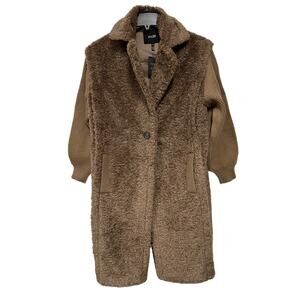 Maje Long faux fur curly coat knit sleeves size 40 US Large new with tags