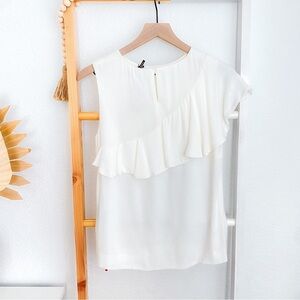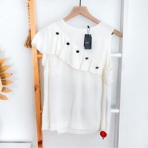 Maje Lorena Top White Buttoned Asymmetrical Ruffle Sleeveless Tank Shirt NEW L