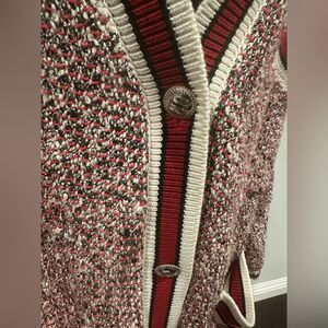 Maje Mapada Knit Button-Front Boyfriend Cardigan in Red & White -size 2 Medium.