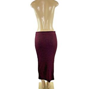 Maje Marled Bordeaux Midi Skirt Size L Red Maroon Sweater Rib Knit Form Fitting