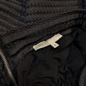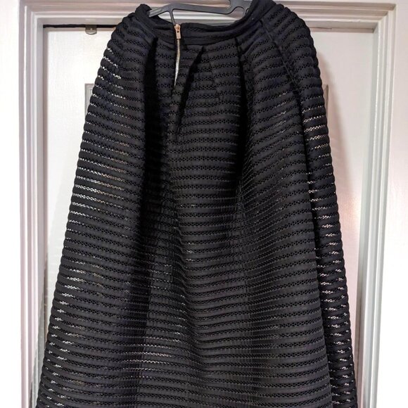 Super fun black floor length skirt. Mesh/lacey skirt with a shorter opaque lining/skirt underneath (goes around mid/upper thigh).