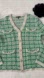 Green tweed (43% Cotton, 33% Wool, 14% Polyamide, 6% Polyamide, 6% Polyester, 4% Polyester Fibers). Cardigan. Long sleeves. V-neck. Front snap button closure.