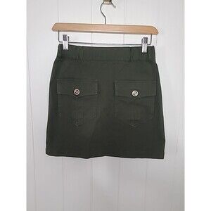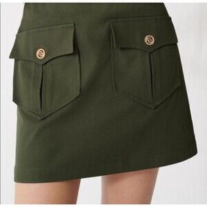 Maje Mini Skirt Size 36 US 4 Army Green Elastic High Waist Stretch Preppy Cotton