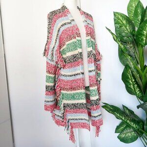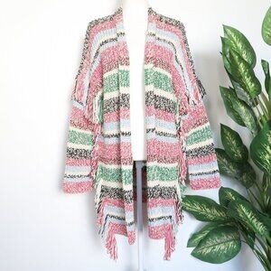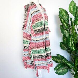 Maje Missy Multicolor Stripe Fringe Knit Long Sleeve Open Front Cardigan Small S