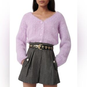 Maje Mistigri V-Neck Mohair Cardigan in Lilac. Size L (FR/EU 3)