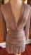 Maje Modern Rose Pink, Gold Metallic Faux Wrap V-Neck draped Mini Dress wSize 8