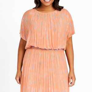 Maje Multi-Color Pleated Romper. Fully lined and flowy. Cape-like sleeves. 3-button hidden closure on back. Elastic waistband to cinch the waist for a defined silhouette. Very chic, elegant, and feminine. Small cutout in the back. Lightweight and perfect for summer months. Maje is a French luxury brand. New with tags. High quality and well constructred. Retails: $445.