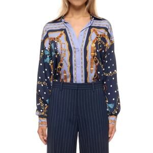 Maje Multicolored Button Down Blouse in Blue Multi, Size 1/US 2-4