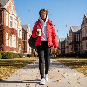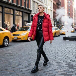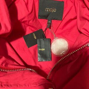 This gorgeous Maje red down puffer is a true winter hero piece — warm, modern, and incredibly chic in that signature French street-style way. The vibrant red tone is luxe and flattering, with a full hood, stand collar, dual zip pockets, and snap closures. The coat is brand new with tags, including the original down sample attached. A rare find in pristine condition.