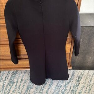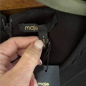 This sleek black bodycon dress by Maje features a form-fitting silhouette with a crew neckline and long sleeves, perfect for a cocktail night out. The minimalist design is crafted from a stretchy, textured fabric, offering both comfort and style.