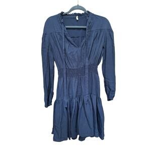 Maje Navy Blue Tie Neck Long Sleeve Ruffle Mini Dress Size 3