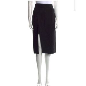 Maje New Solid Black High Rise Waist Knee Length Slit Skirt 36 Xs $295