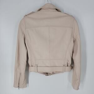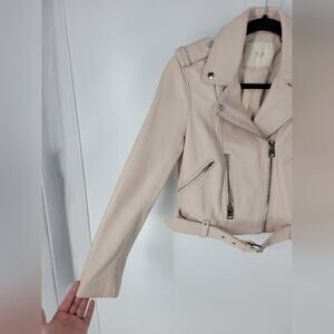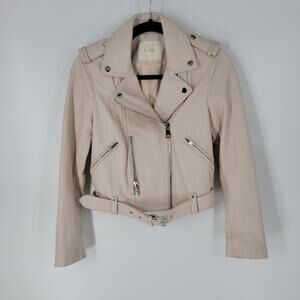 Maje Nude Betsy Cropped Leather Moto Jacket 38