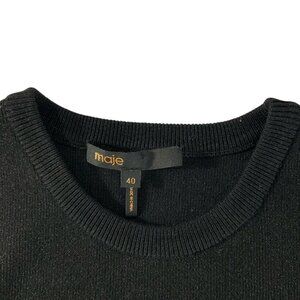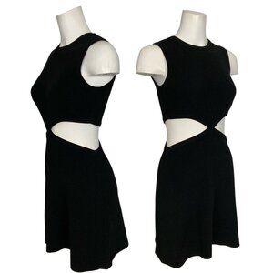 Maje Open Waist Mesh Dress 40 US L Noir Black Mini Cutout Sleeveless Metallic