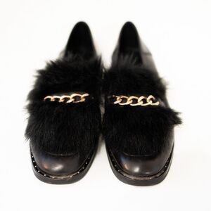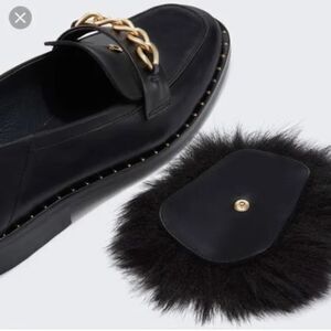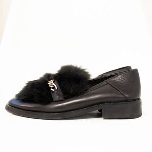 Maje Paris Leather Chunky Loafer with Detachable Fur and Gold Chain EU 38 7.5