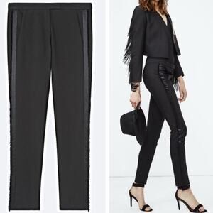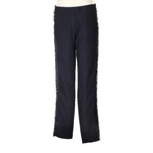 Maje Pauline SatinTuxedo Stripe Fringe Trim Black Low Rise Pants 40 L 10/12