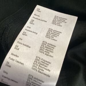 Black Poly Viscose Blend Fabric with a Black Satin Tuxedo Stripe and fringe trim down sides of leg