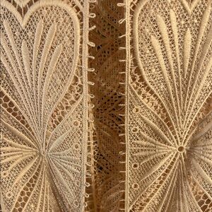 Delicate lace design with intricate patterns. Sleeveless and elegant. Open back. Overlay only- would need to be worn with something underneath.