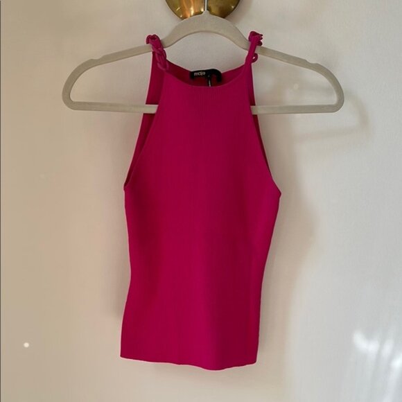 This striking pink tank top by Maje showcases a sleek, fitted design that enhances your silhouette. The sleeveless cut and smooth fabric make it an ideal choice for both casual outings and athletic activities. Its solid color and high neckline provide a chic and contemporary look.