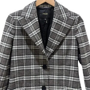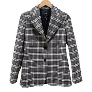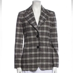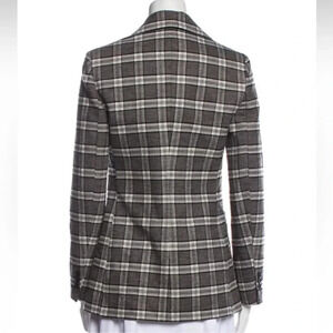 Clothing, wool, glencheck pattern, internal logo, lapel collar, long, long sleeves, front button fastening, front pockets, padded shoulder straps