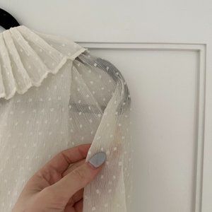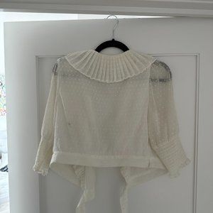 Maje Plumeti Cropped Blouse White Wrap-over Self-tie Belt Ruffle Trim V-neck
