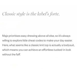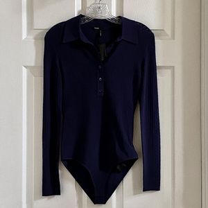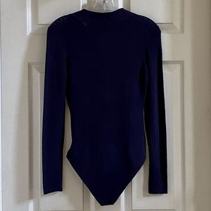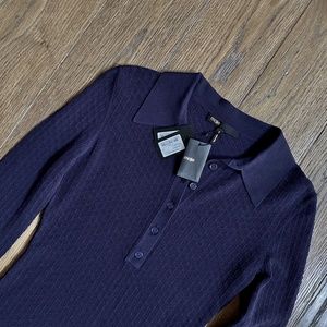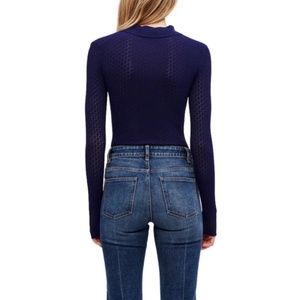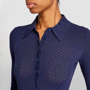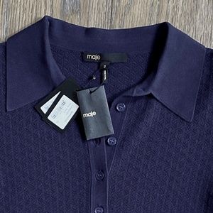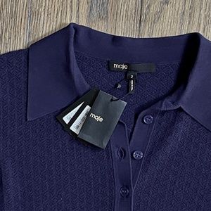 Maje medium sized collared delicate knit pointelle long-sleeve bodysuit with press-stud fastening in color night blue. Size M/2. New with tags.