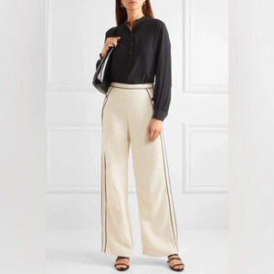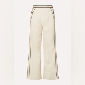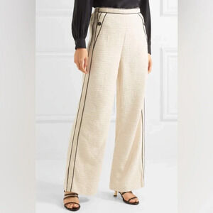 Maje Poppy Piped Cotton Boucle Wide Leg Pants in Ecru size 3/Large