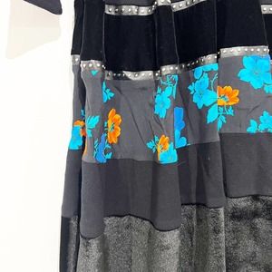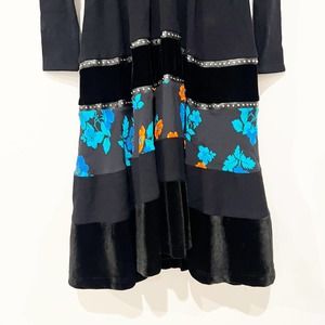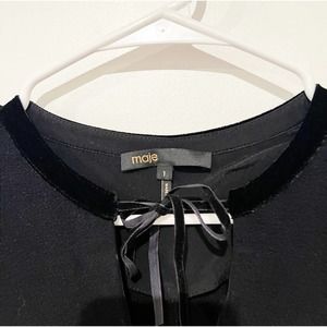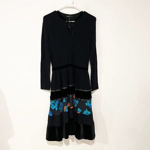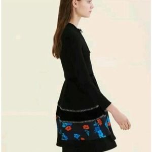 Maje Rafa Ponte Floral Flared Black Velvet Embellished Crepe Mini Dress Small