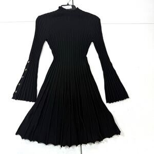Maje Raffie Ribbed Flared Dress black bell sleeve size 36