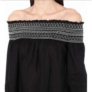 Maje Raffy Off-The-Shoulder Cotton Voile Dress Smocking Fairy Whimsy Elegant