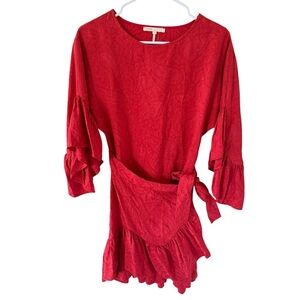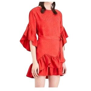 Maje Rahima Jacquard Ruffle Dress In Red