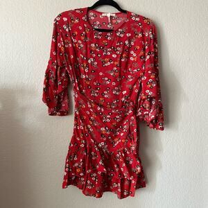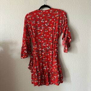 Maje Rahimi Floral Short Sleeve Ruffle Wrap Mini Dress Red Size 1