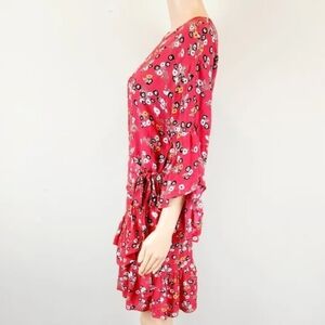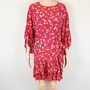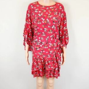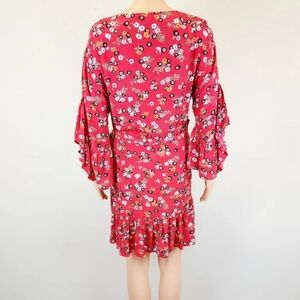 Maje Red Floral Ruffle Detail Wrap Mini Dress