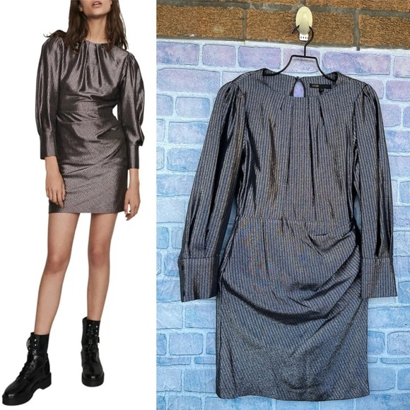 Maje Ralery Mini Dress in Argent Silver size 36/4