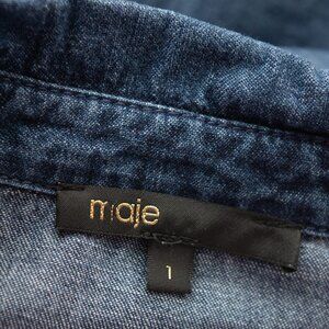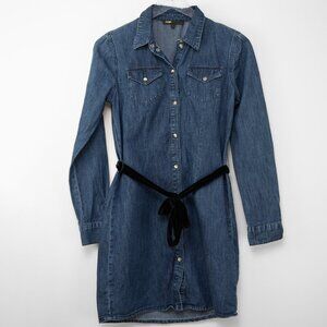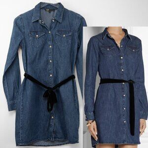Maje Ralexa Denim Shirt Dress Velvet Belt Snap Front Blue Size 1 Small