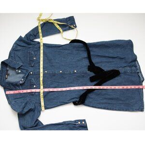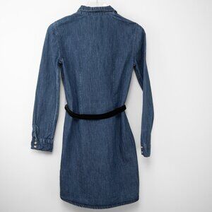 Maje Ralexa Denim Shirt Dress Velvet Belt Snap Front Blue Size 1 Small. Designed with stretch, this shirt dress can be dressed up or down.