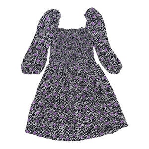 Maje Rappa Floral Print Smocked Puff Sleeve Dress Pockets Navy Purple Size M