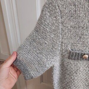 Maje Raveno Knit Sequined Silver Button Shirt Dress