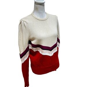 Maje Red & Cream Chevron 100% wool ski Sweater size small